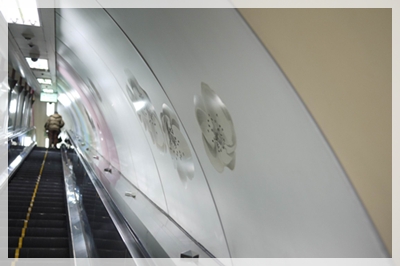 第二天一早出發到梨大囉...地鐵的手扶梯非常長耶...旁邊還有梨花的圖案~~~