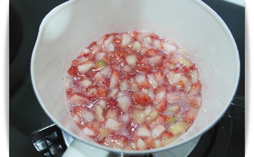 把草莓洗乾淨後切小丁~~這樣煮比較快^^