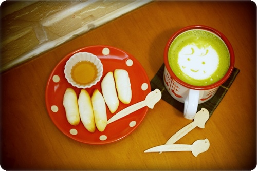 等待烤年糕的過程中呢~~我們來做笑咪咪抹茶歐蕾吧^^"