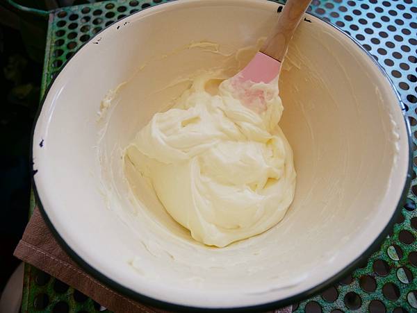 軟化的奶油乳酪與砂糖、檸檬汁拌勻。