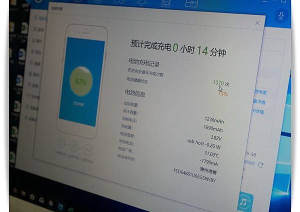 換電池前工作人員會先檢查我的iphoneX手機電池狀態及充電次數,